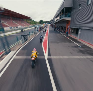 Prise d'image pour une agence de communication. Shooting FPV de 3 équipes: VDS, BMW et Étoile sur circuit et dans les boxes pendant une journée d'entrainement.